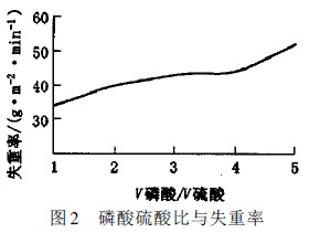 不同的磷酸—硫酸配比对抛光反射率和金属失重率的影响,见图1、图2。