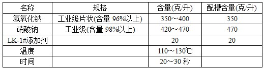 6.碱性化学抛光工艺新配制的溶液一般每升抛光40dm2后,抛光性能下降,但只要添加60克/升硝酸钠,溶液的性能即可恢复。以后只需调整氢氧化钠和硝酸钠的量,溶液便可正常工作。