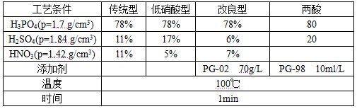“两酸”抛光工艺均无HNO3成分,根除了NOx污染源,不存在废气处理,基础液均为H3PO4—H2SO4酸性体系并配以各自的添加剂。