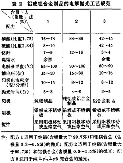 综上所述,纯铝或铝合金制品的电解抛光是一种工艺条件复杂、技术要求较高的阳极电化学加工方法。它对于纯铝或铝合金制品的精饰加工,具有生产的实用价值。