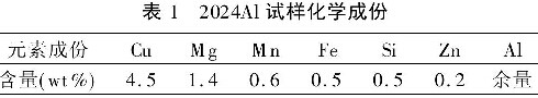 实验所用试片材料为2024 - T4铝合金棒,经机加工而成,主要化学成分见表1.
