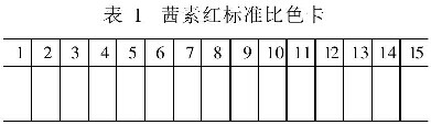 实践证明,铝氧化膜化学着色后色泽感深浅C值取决于氧化膜的厚度和质量,根据铝膜的上色效果可以间接反映氧化膜的厚度。故本实验采用氧化膜色泽度C直接标度膜层厚度,实验中生成的氧化膜立刻置入50~60°C的茜素红溶液中着红色。然后沸水封闭,待干燥后与自制的色板对比,从中读出与膜层颜色最相近的C值。该对比色板将0~1的C值放大为15格(见表1),以便于取数。