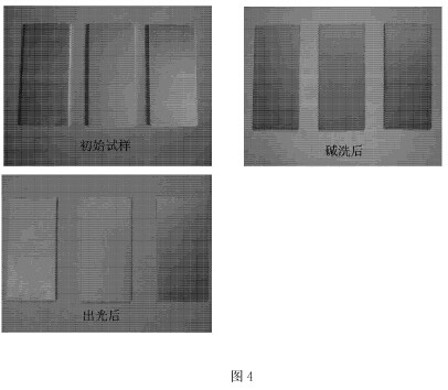 图4是2A12铝合金试样初始形貌及按实施例3碱浸蚀、出光后效果图。