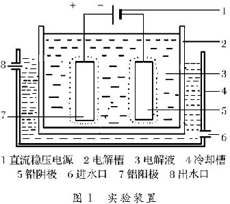 铝片纯度为99. 9%;浓硫酸(辽宁省兴城市红星化工厂),丙三醇(沈阳市试剂一厂),酒石酸(沈阳市新城化工厂),试剂均为分析纯。DF-101S集热式恒温加热磁力搅拌器(巩义市英峪予华仪器设备厂),RXN-305D直流稳压电源(深圳市龙岗区兆信仪器设备厂),CRJ603高敏度电子天平(上海市奥豪斯仪器设备有限公司)。