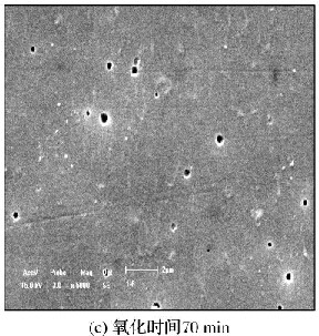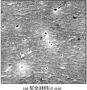 (1)氧化时间对氧化膜表面微孔的分布情况没有影响,主要影响微孔的形状。在一定氧化时间范围内,时间越长,氧化膜表面微孔的形状越规则,越趋向于圆形。