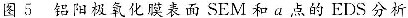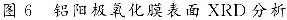 超声波由于其强烈振动与空化作用而被广泛用于电镀、化学镀、磷化和超声波清洗等表面处理技术中,其在铝阳极氧化工艺的应用近年来也逐渐有所研究。实验将超声波作用于铝阳极氧化过程中,并通过扫描电镜、EDS、XRD分析观察超声波对阳极氧化膜结构的影响,结果见图5和图6。