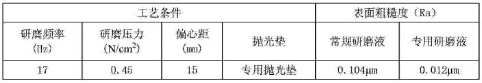 BDE-1B变频调速光学二轴研磨抛光机,TR300粗糙度形状测量仪,常见塑性材料研磨液和专用研磨液,镁铝合金工件,专用抛光垫,研磨参数为:频率17Hz,压力0.45N/cm2,偏心距15cm。