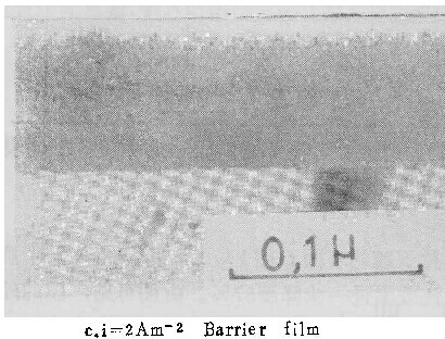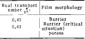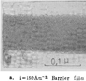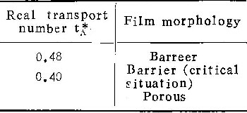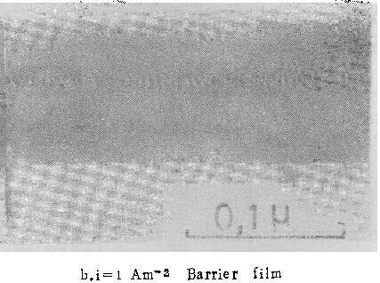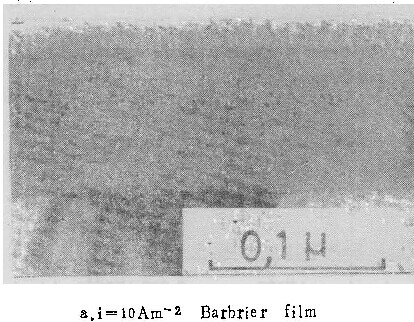 用上述机制,很容易解释临界电流密度的存在。因为含铝离子不断向外扩散,为保持膜与溶液界面处的一定浓度,必须由从膜中进入溶液的铝离子来补偿。如果铝离子通量太小,不足以使界面处铝离子浓度增加到能发生沉积反应的程度,则在膜与溶液界面处不会生成新膜物质,不能形成壁垒型膜。因此铝离子的通量必须大到足以补偿由于扩散而离开界面的量,与之相应的电流密度,即为临界电流密度。