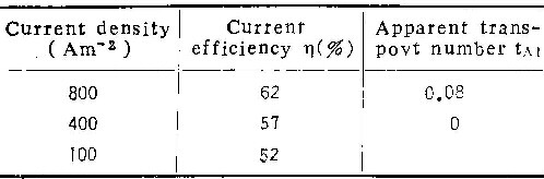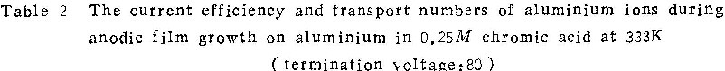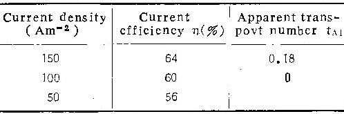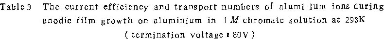 由各表中铝离子的真实迁移分数值可看出,在铬酸铵溶液中,无论溶液浓度、温度或电流密度如何,尽管tA1变化很大,但tA1总是0.44±0.04。同样,在磷酸铵溶液中,tA1总是0.53±0.03。考虑到实验误差,可以认为这些数值是常数。因此可以认为:在同类电解质溶液中阳极氧化时,铝离子所携带的电量分数不随阳极氧化条件而改变。