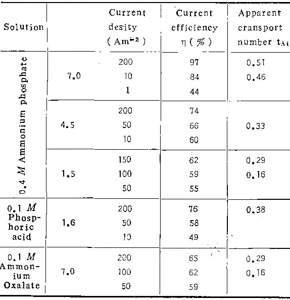 由实验测得的C(g/l),I(A),t(sec.)就可算出膜生长的电流效率。本研究工作中,测量的精度约为4%,个别的可达0.1%。