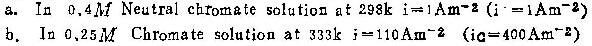 溶液温度。临界电流密度值随溶液温度的升高而显著增加。如当0.25M的铬酸溶液的温度从293K增至333K时,临界电流密度从100Am-2增至400 Am-2。