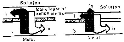 当i下降至约100Am-2时(图1b),虽然膜仍为壁垒型,但标记氙原子位于膜的最外表面,且溶液中可检测到较多的铝离子,电流效率降至59%。表明膜全部由含氧离子形成,向外迁移的铝离子完全进入溶液。