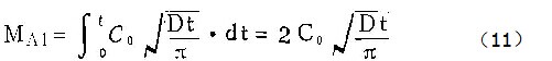 在t=0到t=t时间间隔内,从单位面积进入溶液的铝离子量为: